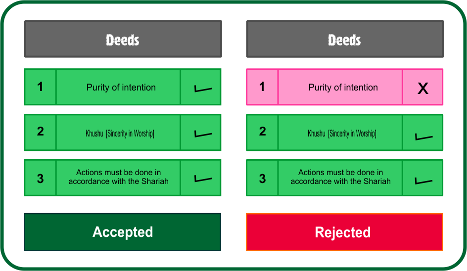 What are the 3 basic conditions for a deed to be accepted by Allah?