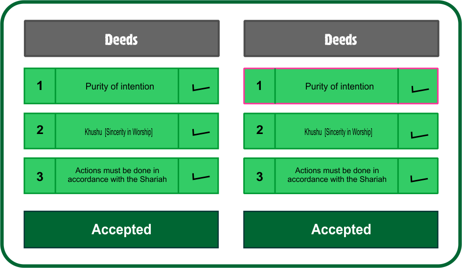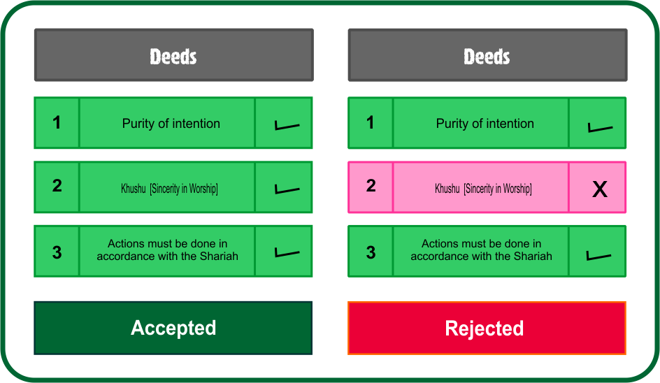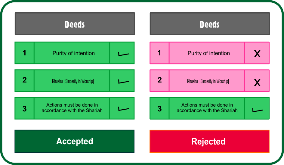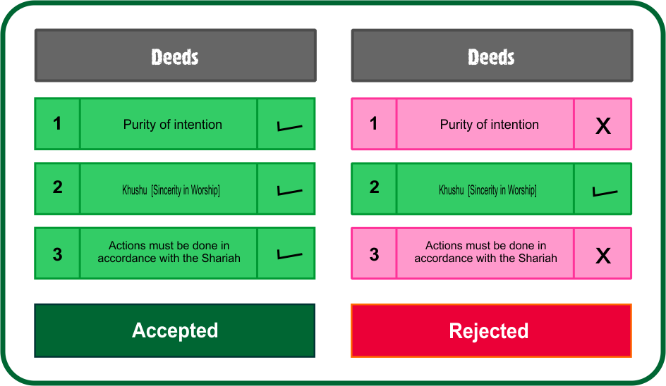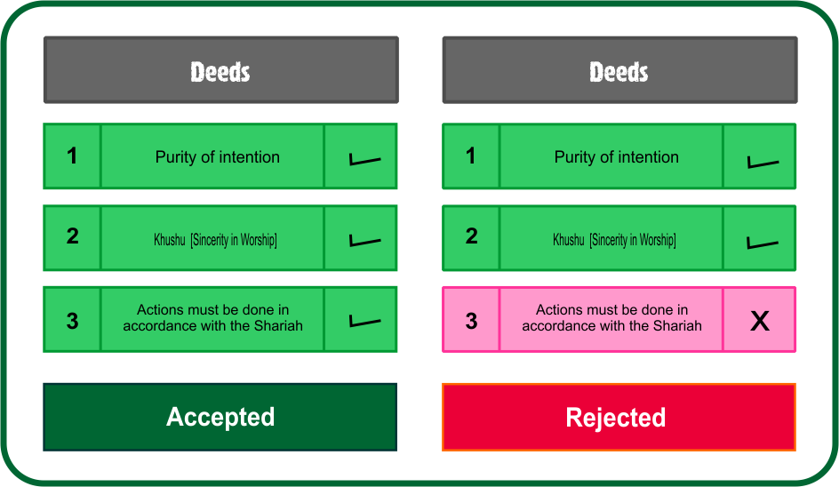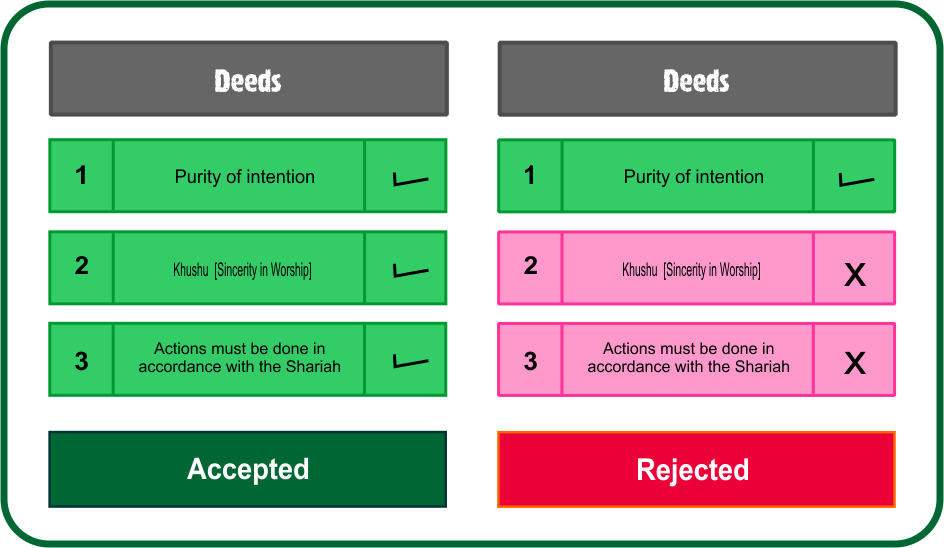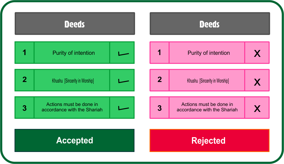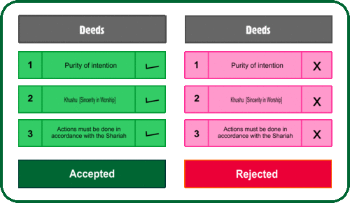 What are the 3 basic conditions for a deed to be accepted by Allah?